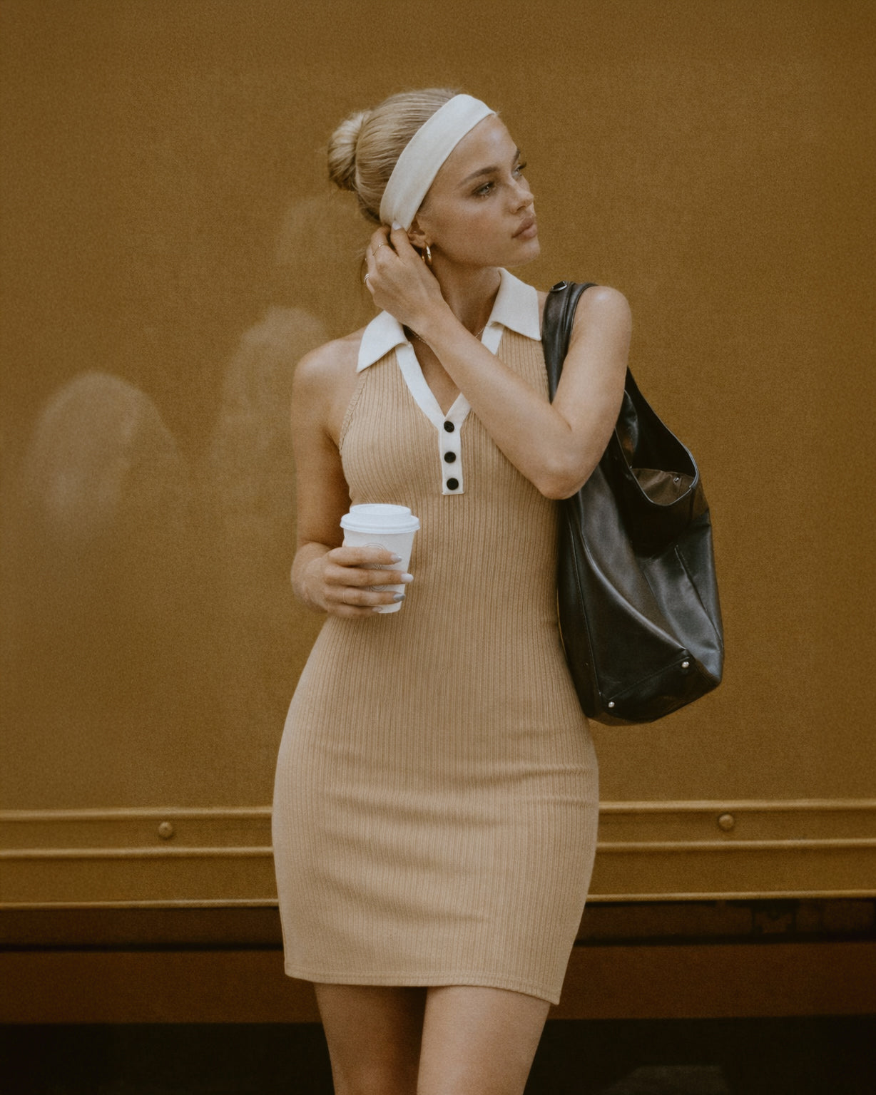Sculpted Elegance Rosette Appliqué Bandage Dress