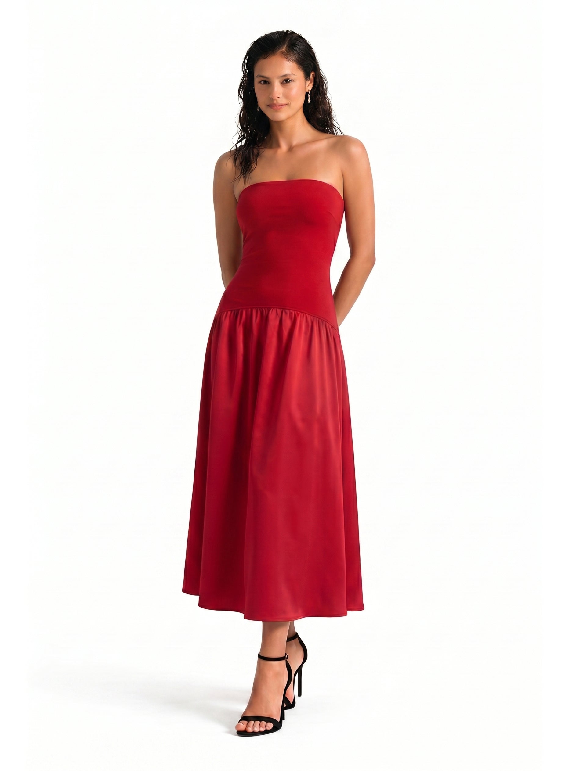Mirelle Hybrid Bandage Satin Midi Dress