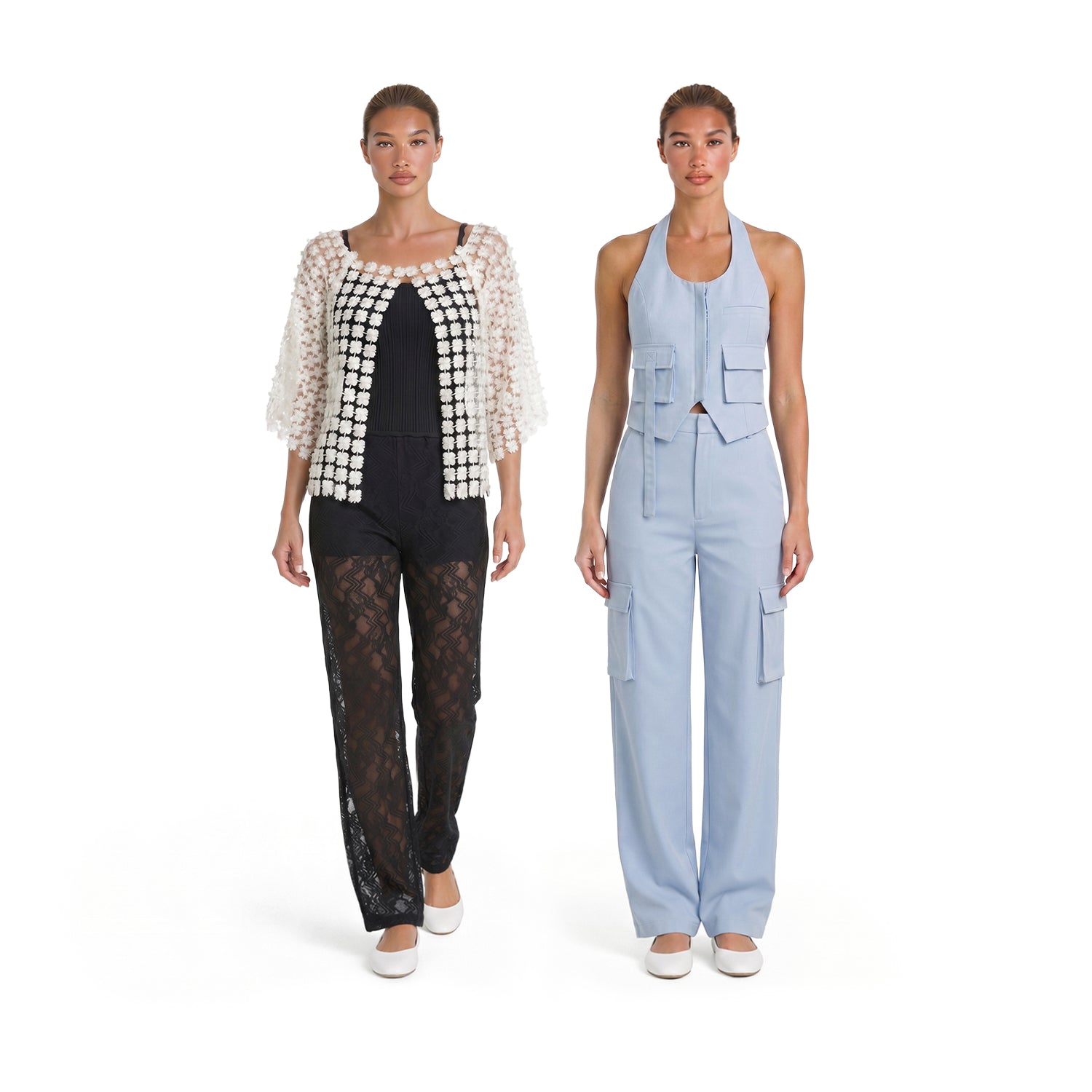 Tank Top and Pants With Slit Bottom Hem